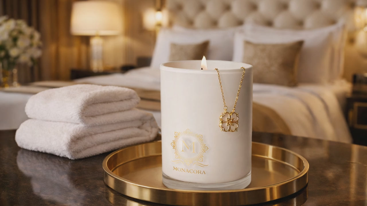 La bougie MONACORA n'est pas une bougie ordinaire. C'est une expérience en trois actes : allumez la flamme, laissez-vous envelopper par un parfum raffiné, puis découvrez le collier dissimulé au cœur de la cire. Coulée à la main, 100 % artisanale et vegan, elle réunit deux plaisirs que l'on croyait incompatibles — la sérénité d'un moment parfumé et l'émotion d'une découverte précieuse.